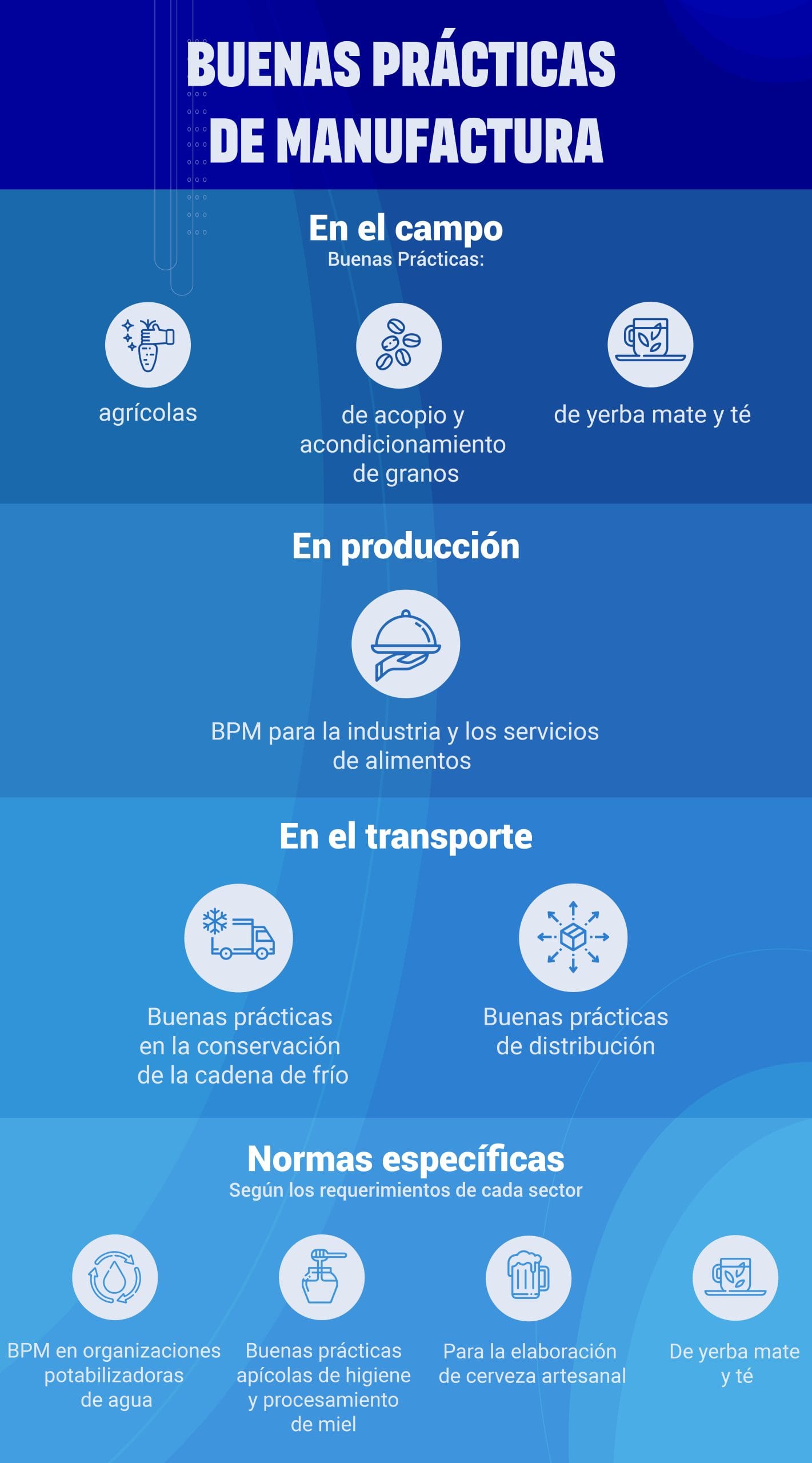En IRAM trabajamos desde hace muchos años en el desarrollo de normas y certificaciones de BPM que abarcan todas estas etapas para cada tipo de producto y se actualizan de forma permanente. Entre otras, podemos mencionar: