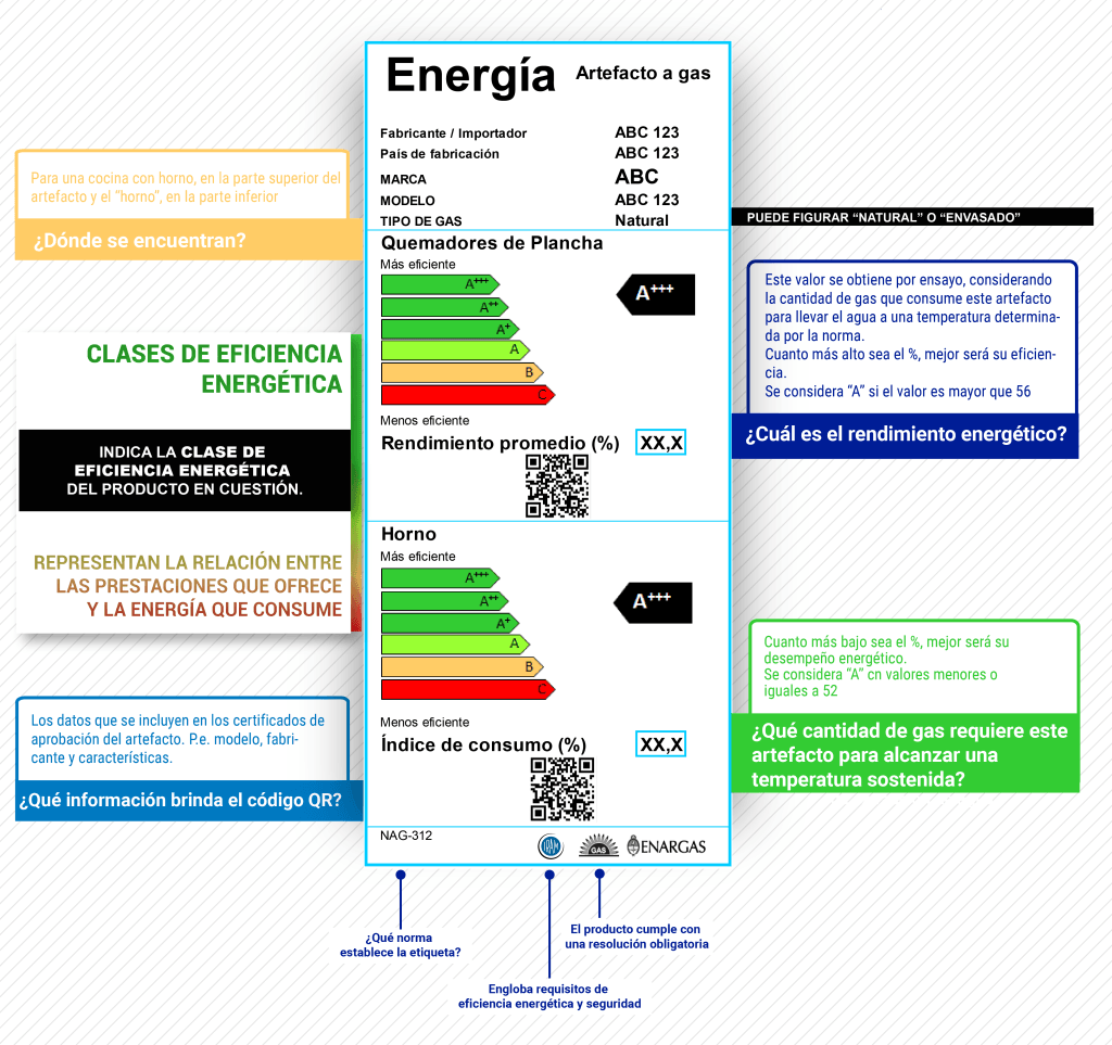 Por ejemplo, esta es la etiqueta de EE de cocinas a gas con el detalle de los ítems que la componen: