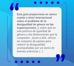 Establece pautas y recomendaciones concretas para todo tipo de organizaciones, públicas y privadas, en un esfuerzo por alentarlas a avanzar hacia la EG en sus operaciones y actividades y en diferentes contextos, como parte de su estrategia.