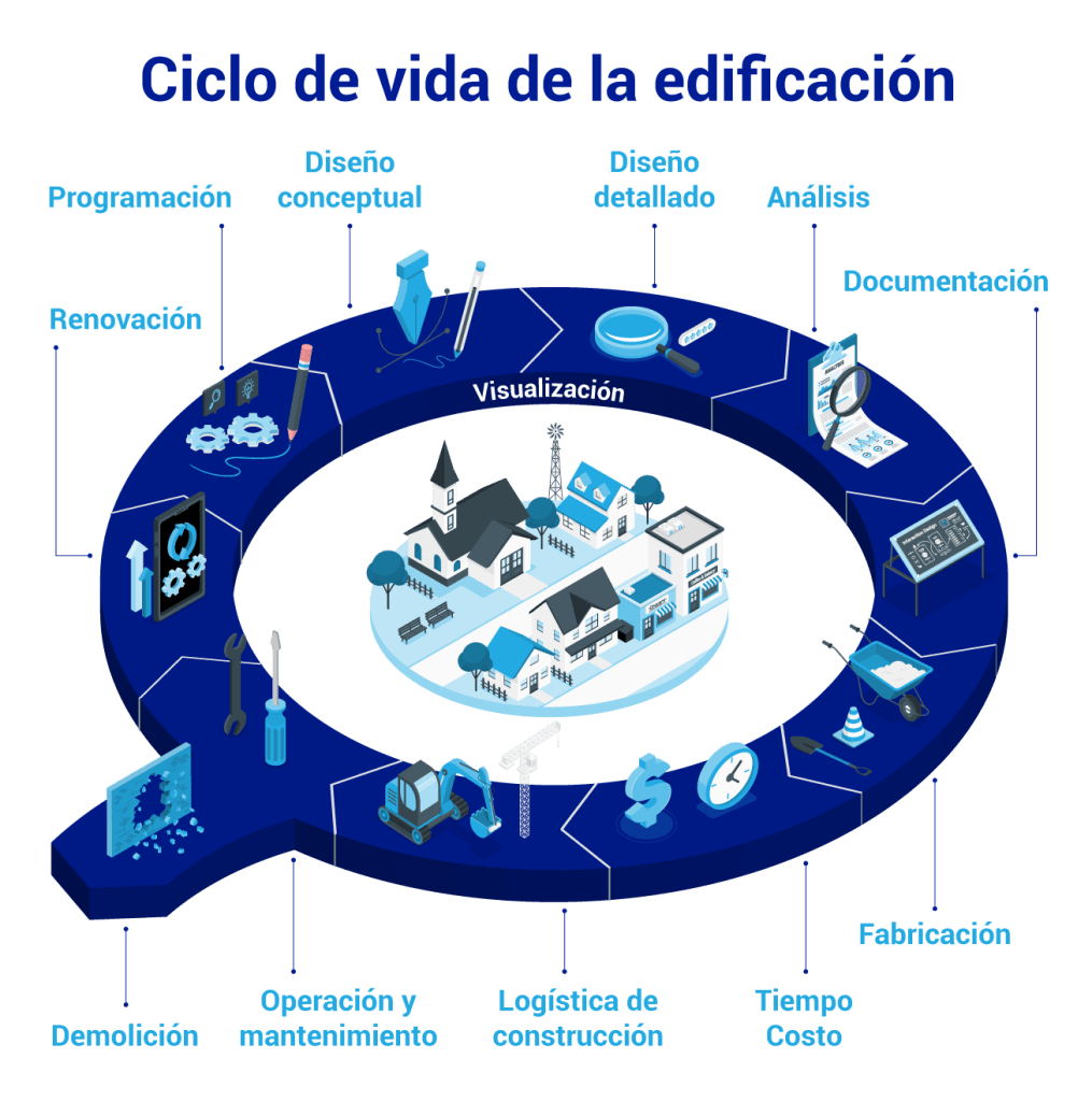 De esta manera, se logran representar las características físicas y funcionales de los edificios y de las obras de ingeniería, facilitando el intercambio de información para la toma de decisiones a lo largo de su ciclo de vida (proyecto, construcción, uso y reciclaje o demolición).